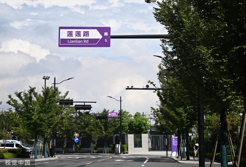 2023年9月16日,杭州亚运村正式开村,该村内部多条道路以杭州亚运会元素命名,成为别样街景。 中新社记者 王刚 摄