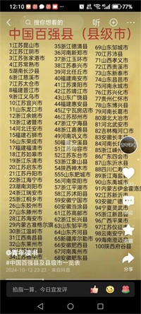 从百强县前20名可以看出,江苏省,浙江省,山东省,福建省依然是比较强劲的,跟人们的预期基本一样,都是经济大省,都是经济强省,无论是经济发展,还是综合实力都让人羡慕。