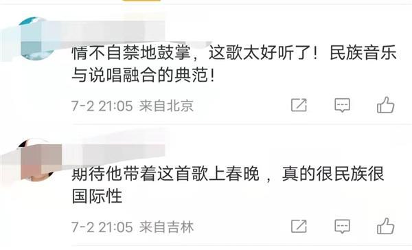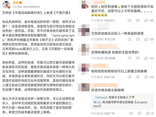 “民族与潮流融合的典范,希望艾热带着这首歌上春晚”