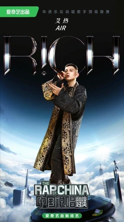 艾热AIR是2018年《中国新说唱》的全国总决赛冠军,也是2020《说唱听我的》导师。他创作的音乐风格多变,他写的歌词富有意蕴深度,他的金属芯声线与腔调有着很强的辨识度,他又有着精湛的唱功与旋律创作能力,这也造就了艾热AIR音乐作品的流行传唱度与巨大吸引力。