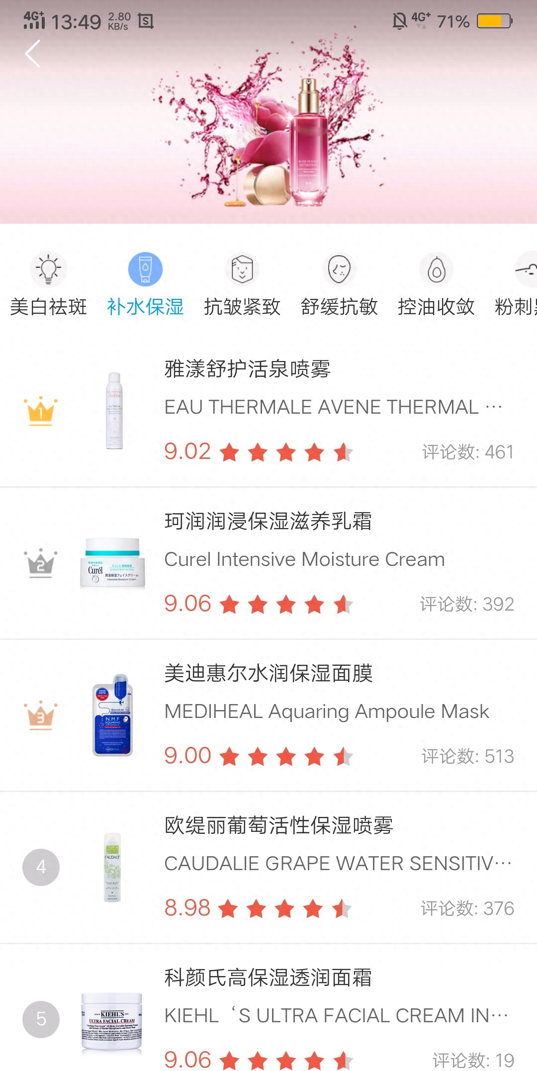 皮肤在晒伤后的6个小时内一定要补水保湿,否则角质变厚失去光泽就完了。补水保湿的产品有很多,没有什么意见的小伙伴们,可以利用真我app的补水保湿一栏查找