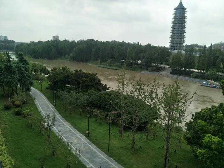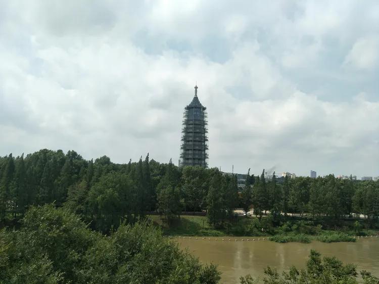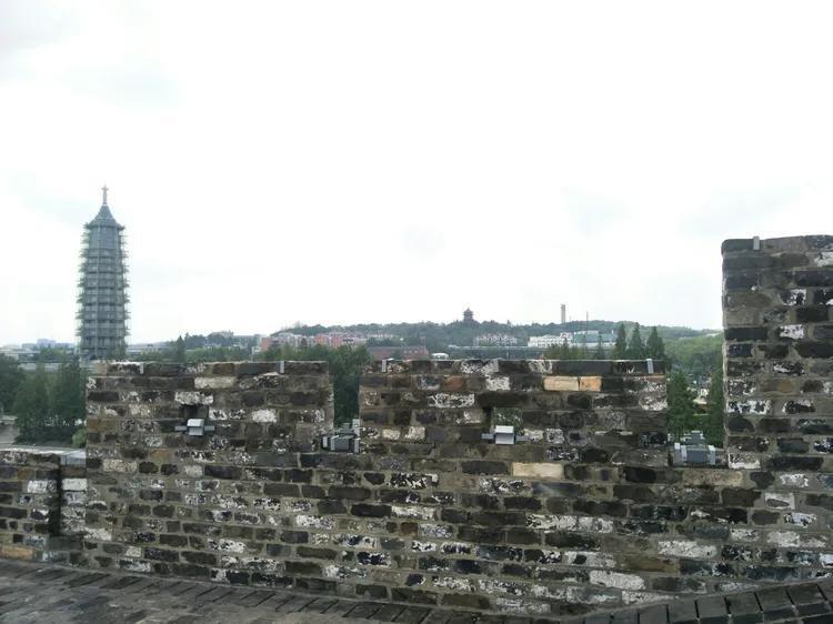 站在中华门城墙上可以看到大报恩寺,寺院内玲珑塔高高耸立。