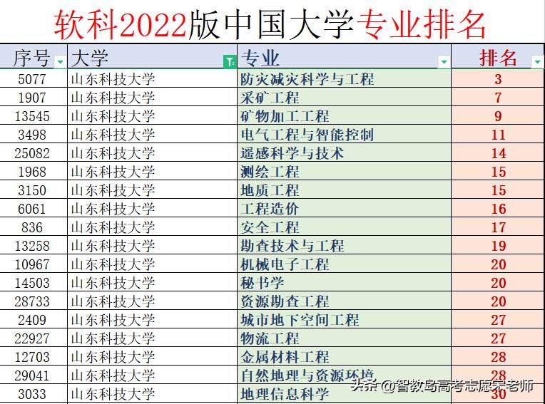 山东科技大学在软科公布的2022版中国大学专业排名: