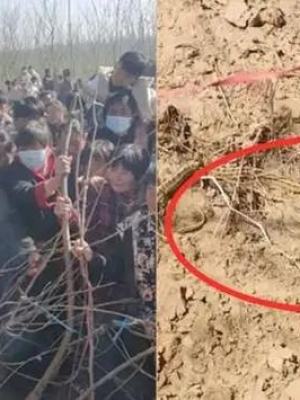 村民围观冬天坟地里出现的鸭子蛇群