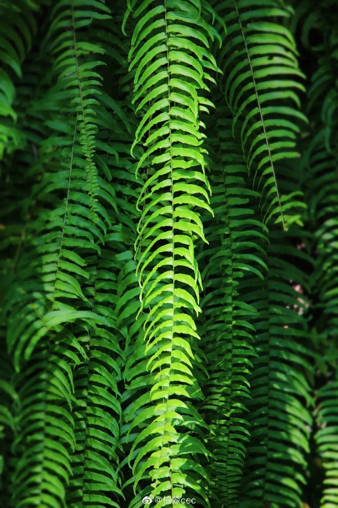 蕨类植物叶子像排列整齐的羽毛。蕨类的拉丁名“pteridophyta”是古希腊语的pteris(蕨类)+ phuton(植物);pterís则来自古希腊语的πτερόν (pterón),意思是“羽毛” | 柏淼