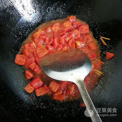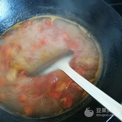 5、等番茄热量炒出汁后,倒入一汤碗水,烧开。加入适量的做法盐。