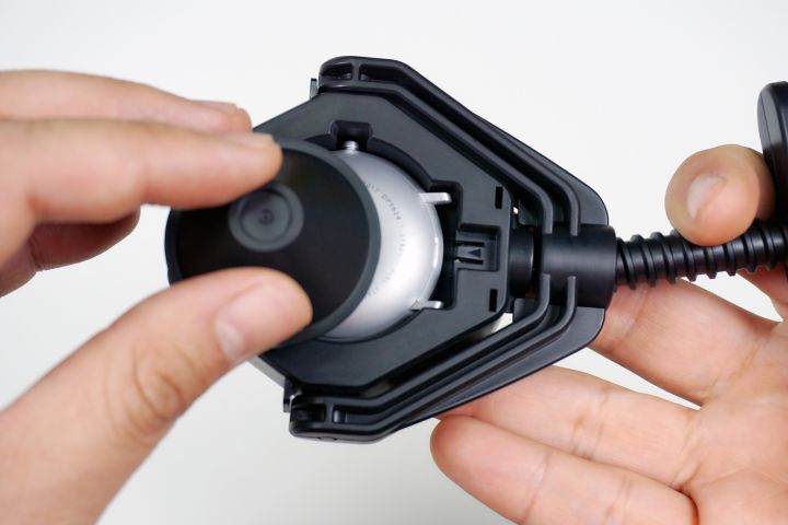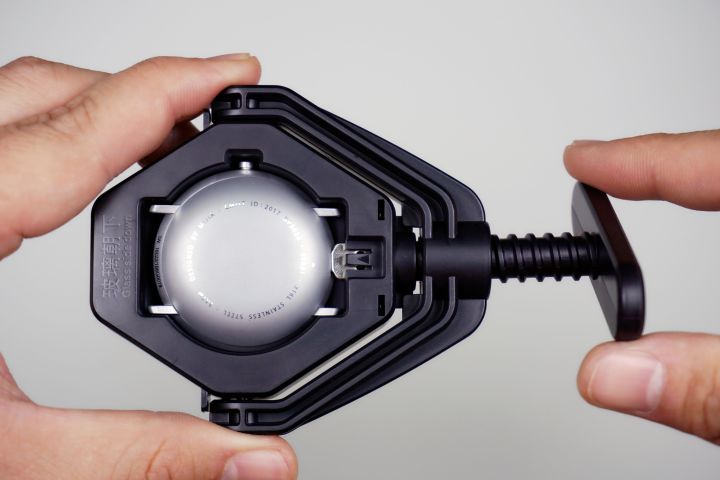 将该开盖器手柄直立起来,顺时针旋转把手,直到听到响声,说明后盖已经被合上了。