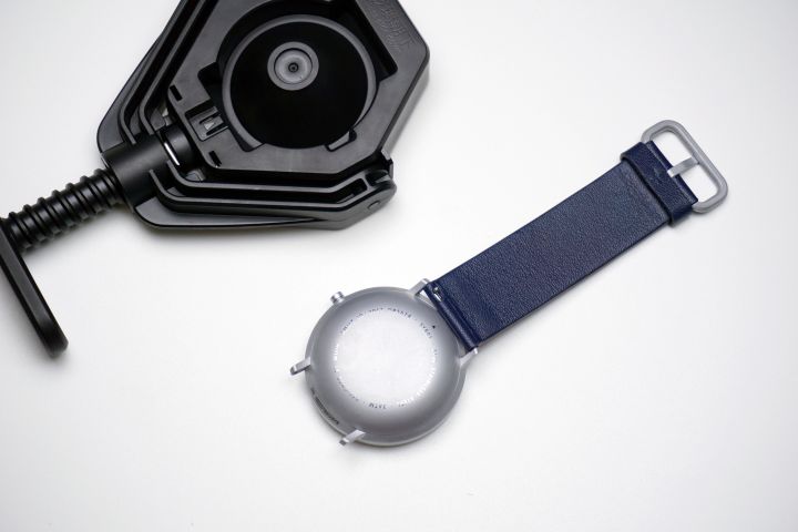 最后一步,将表带装回手表。在更换完电池后,手表重新连接米家APP,在设置>指针校准>校准计时指针,根据提示校准一下计时指针,确保手表在更换完电池后能够转针至准确时间。
