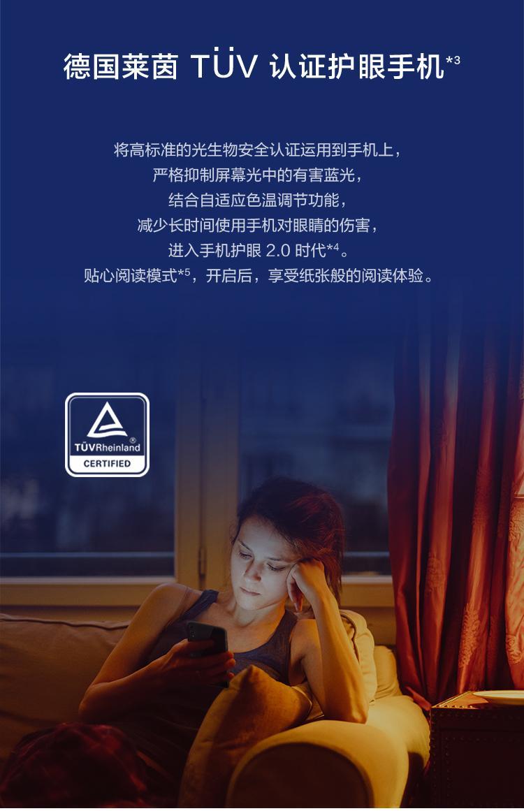 并且具备德国莱茵认证,大幅降低有害蓝光对人眼的伤害,进入手机护眼2.0时代。