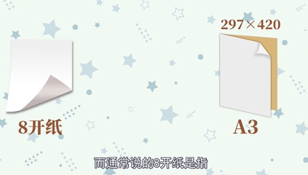8开纸不是a3纸。A3是指国际标准的纸张(297mm×420mm),其纸张大小是唯一的,而通常说的8开纸是指我国1965年国家标准中的A组的8开纸(273mm×393mm)。
