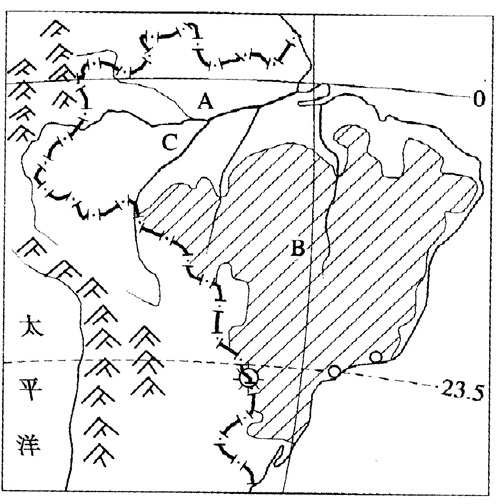 2、巴西的世界之最:最大的平原—A—亚马孙平原;最大的高原—B—巴西高原;流量最大、流域面积最广的河流—C—亚马孙河。是世界热带面积最大的国家,拥有世界面积最大的热带雨林,其中60%在巴西境内(记住P90图9.18:亚马孙平原、巴西高原、亚马孙河、大西洋、巴拉那河、圣保罗、巴西利亚、里约热内卢)。以热带雨林气候和热带草原气候为主。