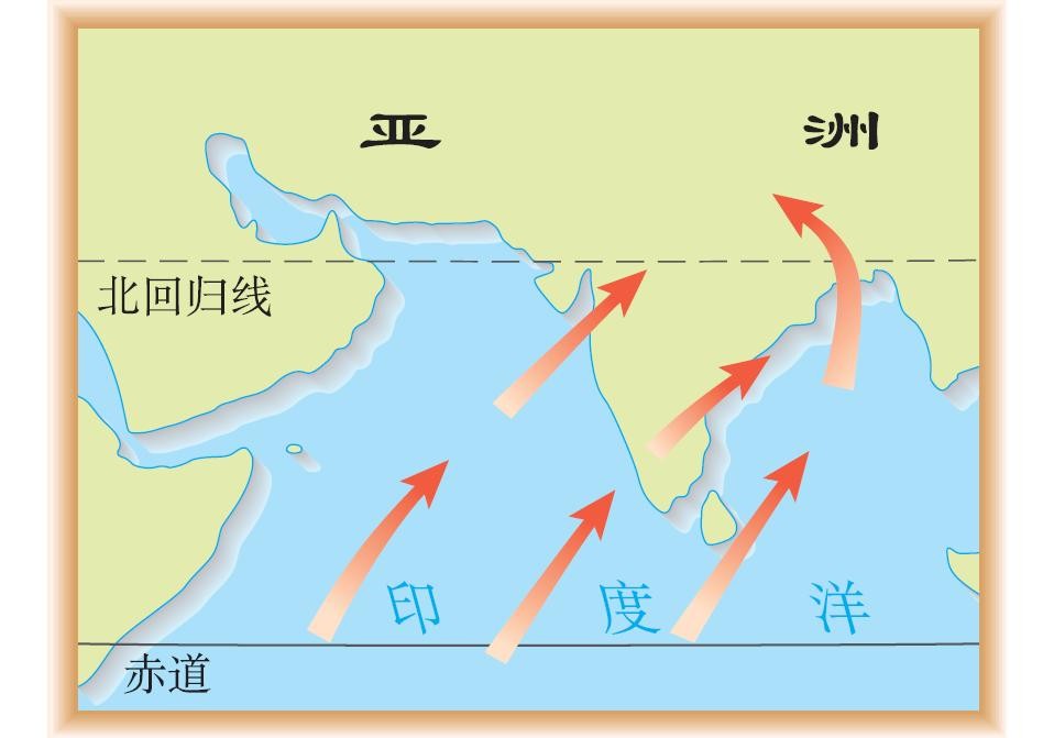 位置:① 大部分位于10ºN——30ºN之间,主要位于热带。② 海陆位置:亚欧大陆南部,印度洋以北,东濒孟加拉湾,西濒阿拉伯海。