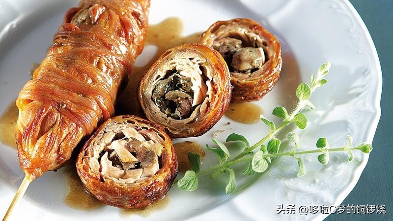 一旦馅料均匀地分布在面皮上,面点师会将面皮从一侧卷起,形成一个长而厚实的卷。然后,他们将这个卷形状的面团转移到烤盘上,并在表面刷上一层蛋液,以增加酥皮的金黄色外观。
