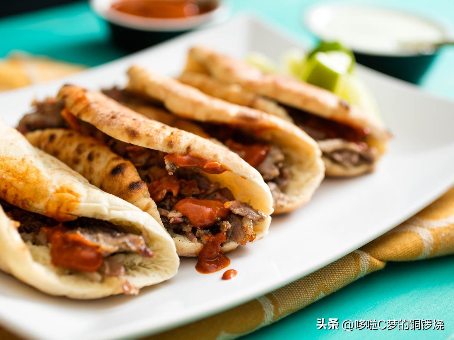 这些配料可以根据个人喜好而有所不同,但常见的配料包括切碎的生洋葱、新鲜的切碎的西红柿、莴苣、香菜和辣椒酱。有些人还会添加一些切碎的酪梨(avocado)或切片的辣椒来增添口味。