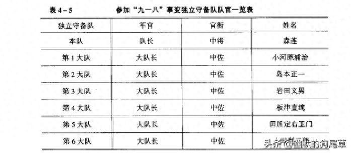 1931年参加“九一八”事变的独立守备队队官情况