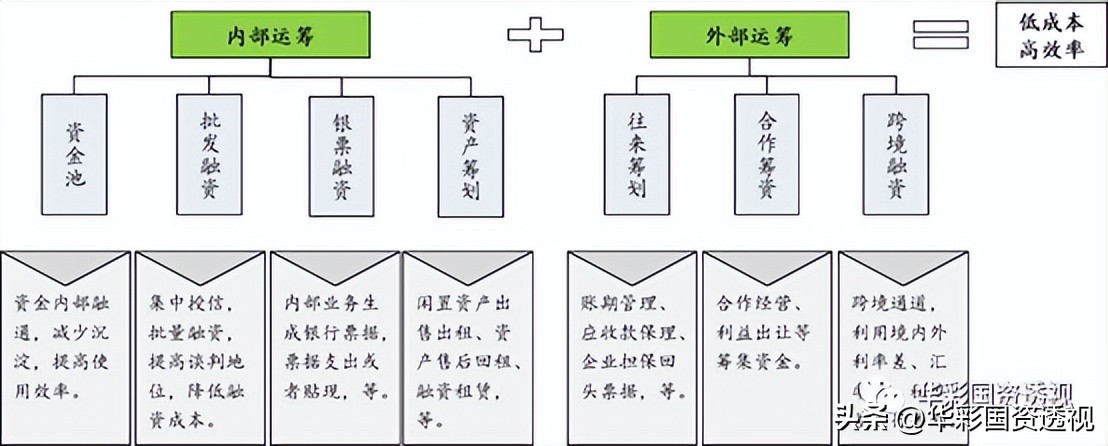 通过资金集中管理中心和财务公司打通内部资金链,并统筹外部融资,降低资金成本。