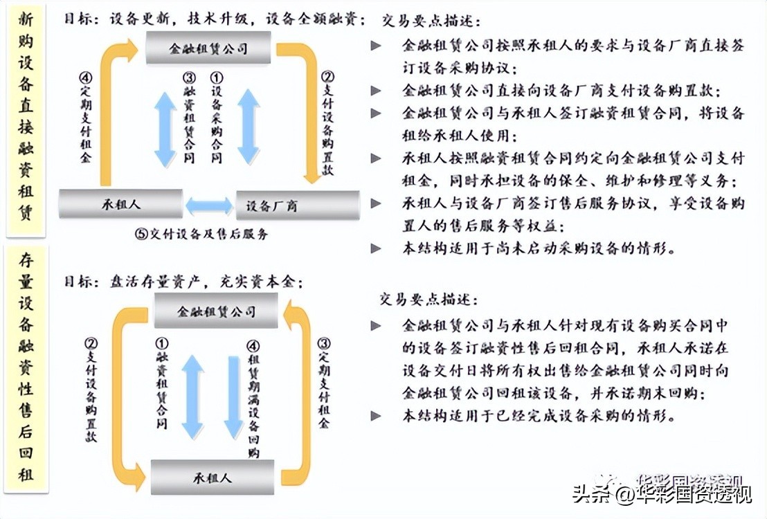 5、售后回租式融资租赁。售后回租式融资租赁也是华夏幸福非常擅长的融资方式。华夏幸福在2014年分别与大厂回族自治县鼎鸿投资开发有限公司和中国外贸金融租赁有限公司通过售后回租式融资租赁,用没有任何现金流价值的地下管线,获得了近6亿元的真金白银,以华夏幸福项目的收益率,在覆盖这些成本的基础上还能有相当不错的收成,应该说是一笔十分划算的融资交易。