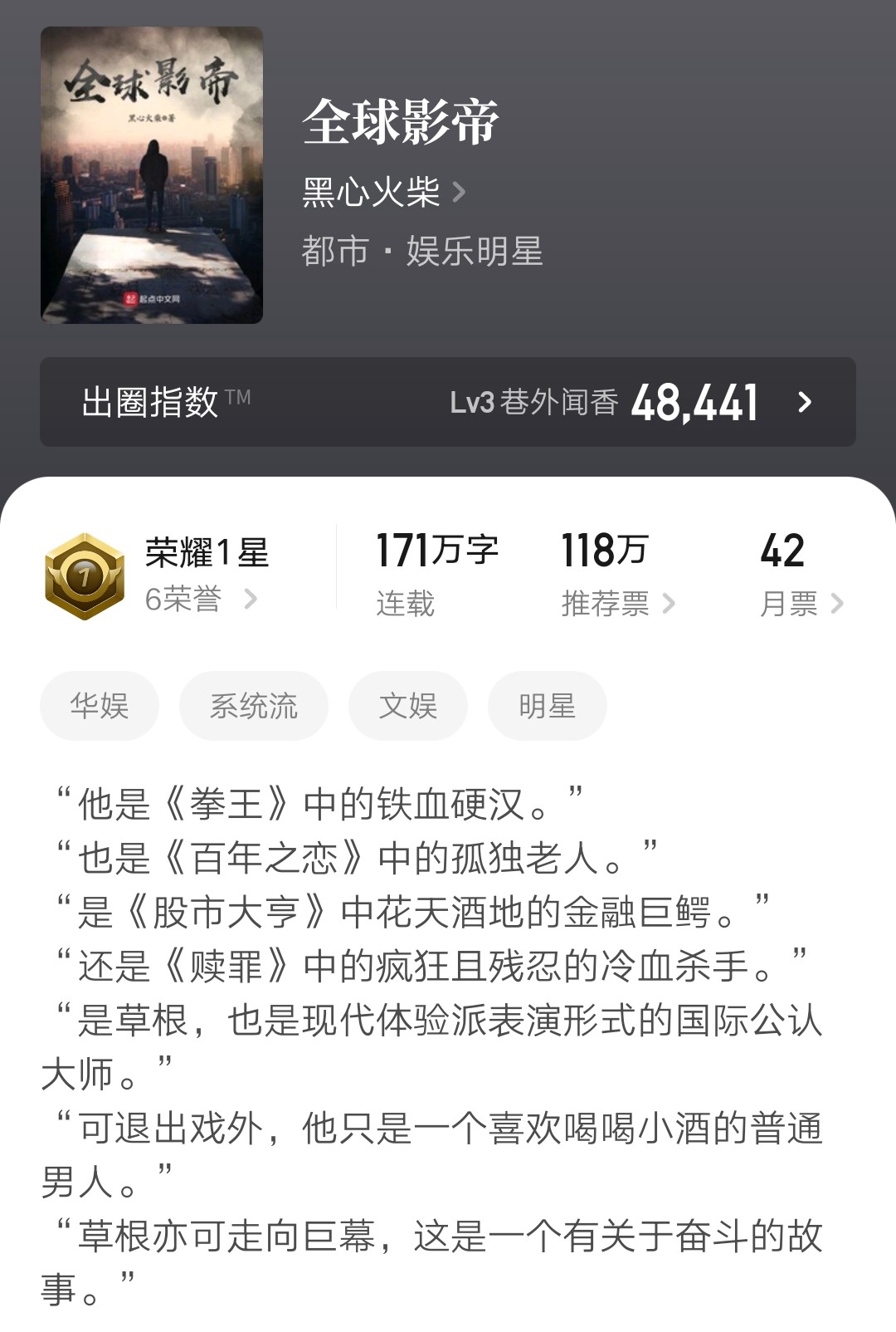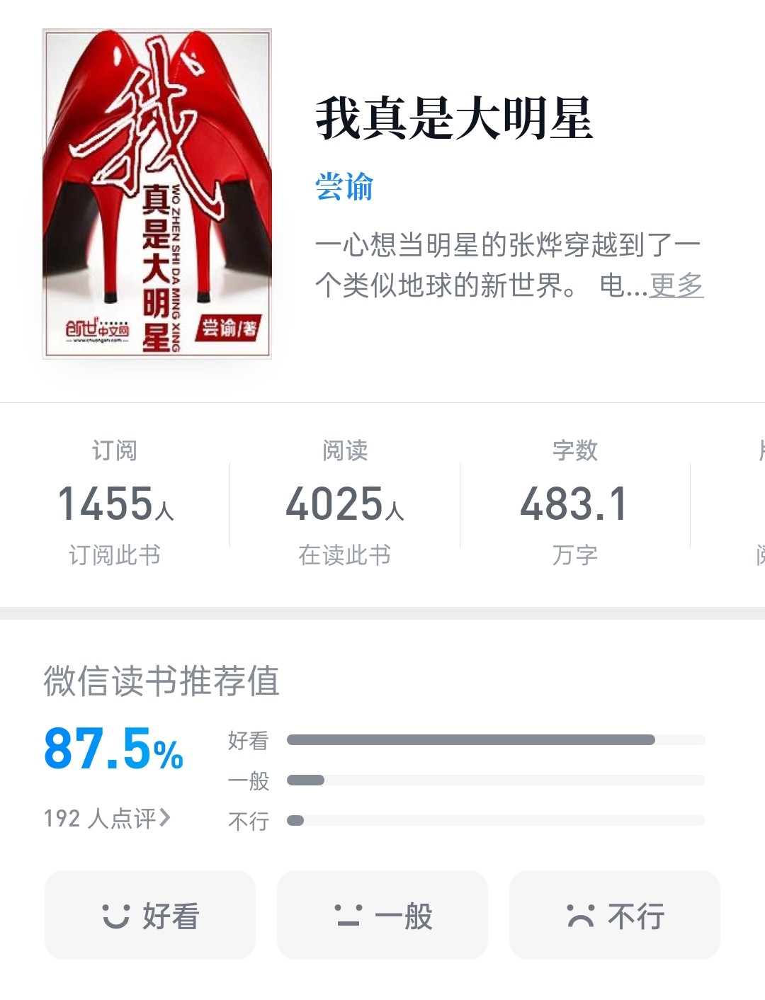 我真是大明星这本书真是不得不让人佩服,同时也是目前阅文白金作家尝谕的“绝笔”作——因为他的下一部作品还不知道写不写了。