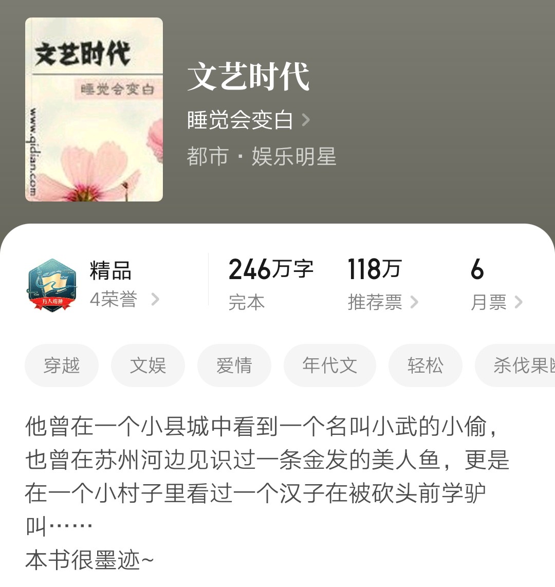 上面这几本文娱小说你看过没?你觉得怎么样?你有什么好的作品推荐吗?欢迎在评论区留言评论!