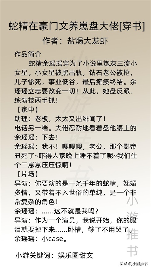 几本精品文娱类小说推荐,每部作品风格都独树一帜,称得上经典 关注小s,每天给你带来精品小说推荐! 娱乐圈一直是一个很大圈子,我们可以在这里看到世上所有的光鲜亮丽,也可...