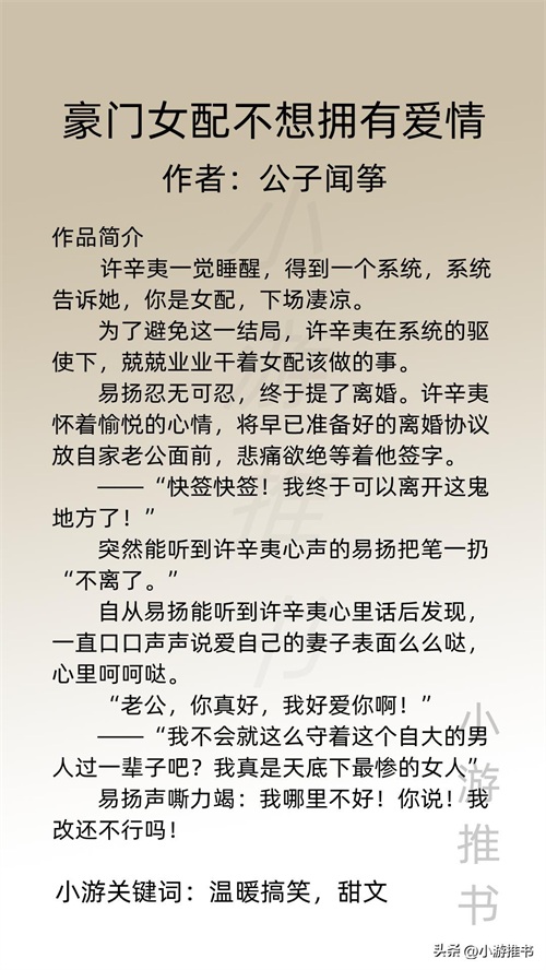 19.《豪门女配不想拥有爱情》 作者:公子闻筝