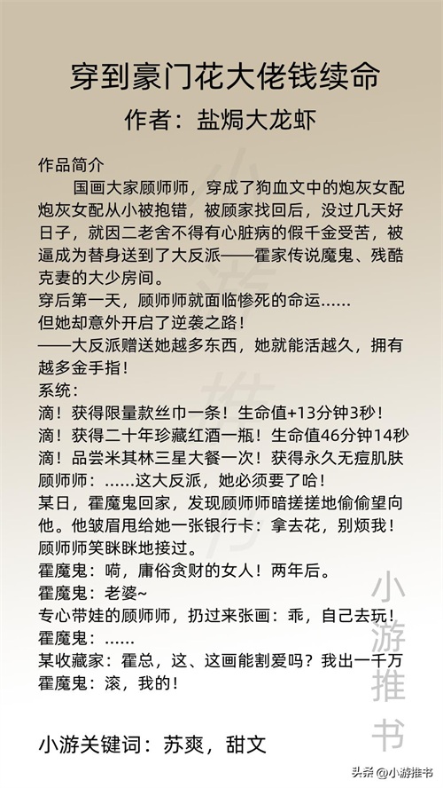 09.《穿到豪门花大佬钱续命》 作者:盐焗大龙虾