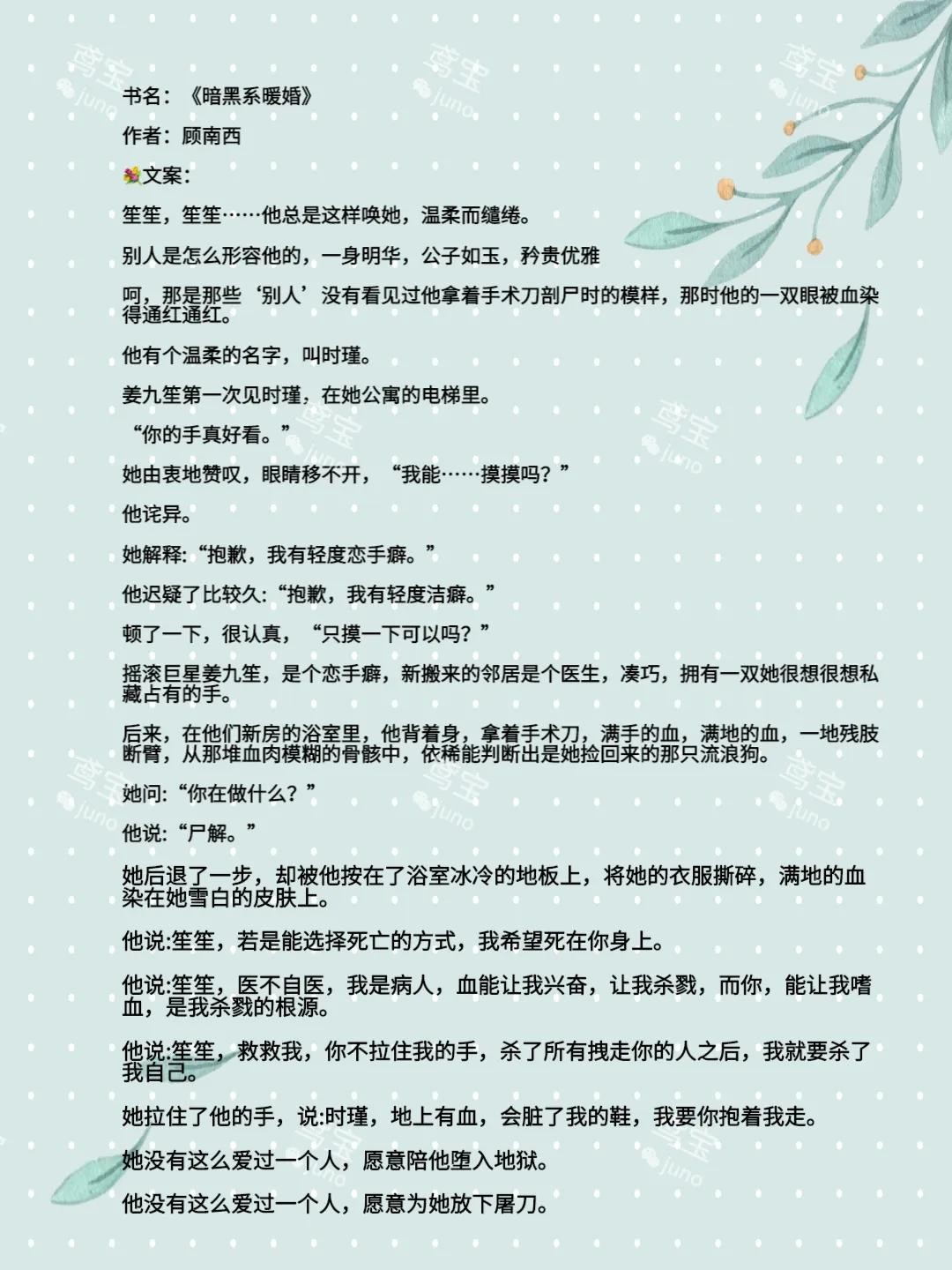 说不出来这到底是是甜文还是虐文,读的时候总有一种窒息的感觉。