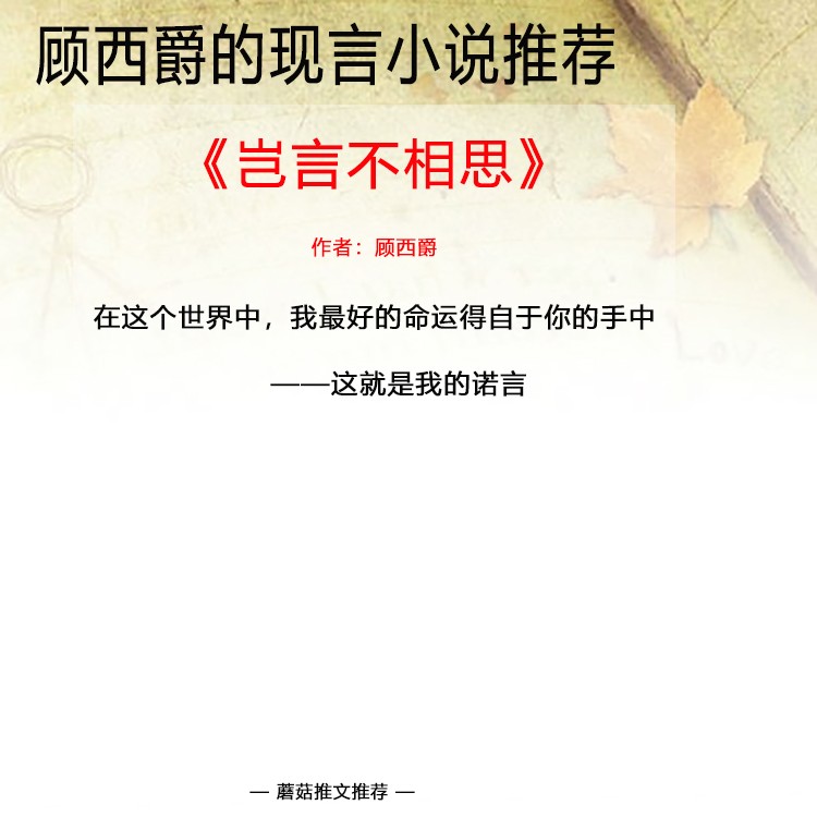 1、《岂言不相思》作者:顾西爵