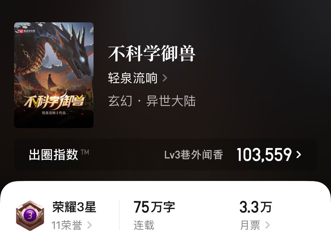 这是一本有进化养成元素的召唤流御兽小说,也是近期非常值得一看的御兽流小说(本书作者之前的几本作品也是类似的御兽流的小说,可以说是御兽流的老作者了)。