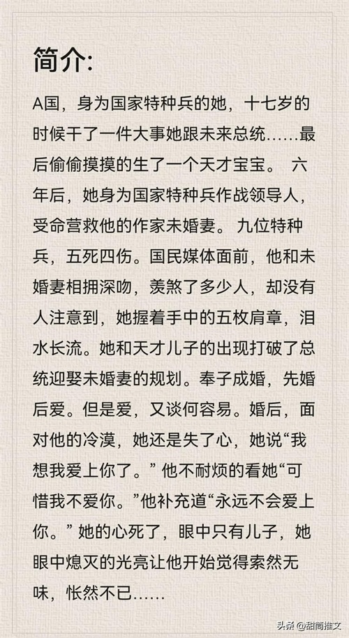 读后感:这本相对其他几本比较平平无奇,看下来情绪波动会比较小。先婚后爱➕奉子成婚。看起来应该相敬如宾过一辈子的两个人,却在相处中对彼此产生了情感,可是一个不懂爱,一个胆怯爱。(她爱他的时候他不懂爱,他爱她的时候她不需要爱了)书中女主我还是很喜欢的,勇敢坚强,有自己的独立思想,不依靠男主。
