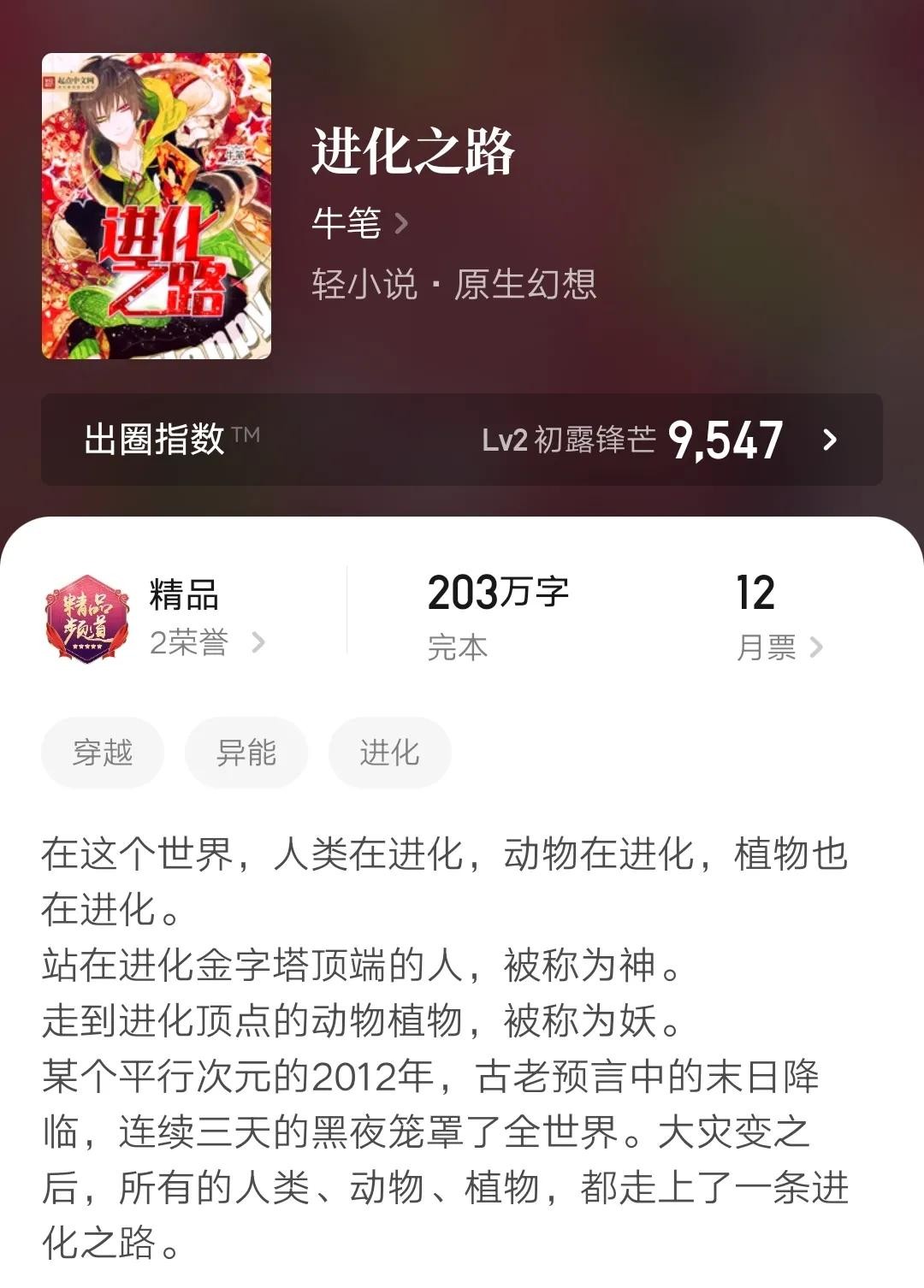 四本涉及进化的小说,脑洞大文笔好,已完本,剧情精彩,书荒必备