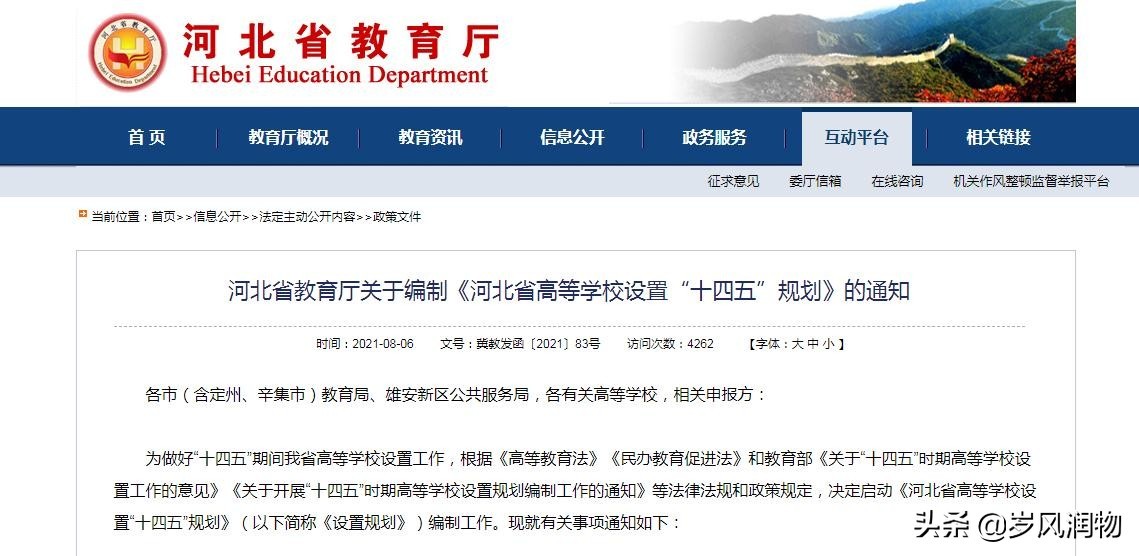 河北省教育主管部门在2021年8月发布的关于编制《河北省高等学校设置“十四五”规划》的通知,其中明确指出,“从严控制异地办学,新申报设置事项的学校,须不存在跨省异地校区。对确需设立省内异地校区的,严控数量、严把条件。对现存高校异地校区,本着平稳有序原则逐步清理规范。”而且,这样的高等学校设置原则并不是河北省一省单独制定的,而是依据国家教育主管部门关于“十四五”高等学校设置的相关意见和政策制定的。