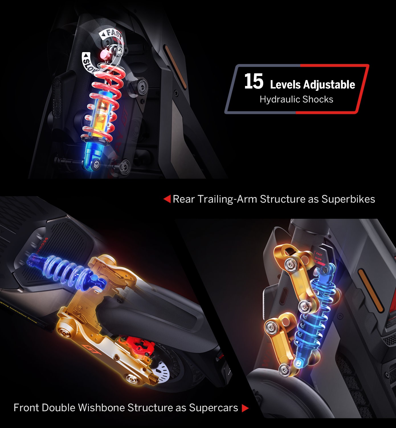 前部采用双横臂悬架,在踏板车后部采用纵臂悬架。