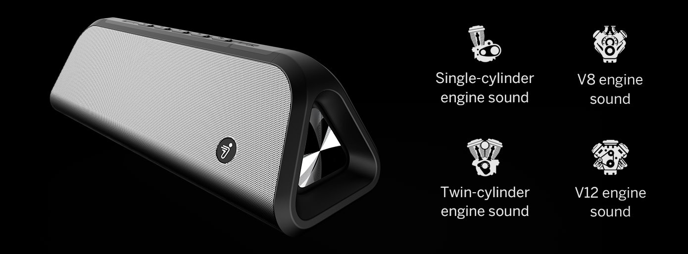 没错,GT还有音响,引擎模拟器无线扬声器根据设备的油门、刹车和其他信号发出逼真的引擎轰鸣声,并可以再现4 种不同的音效,带来身临其境的骑行体验。如果你不想听到引擎的轰鸣声时,可以将其用作蓝牙扬声器,在骑行时播放喜爱的音乐。