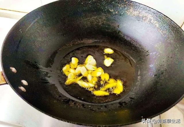 2 爆香调料,把香葱切碎,葱白葱花分开放,大蒜切片。锅中烧油,油热后加入葱白和大蒜爆香。