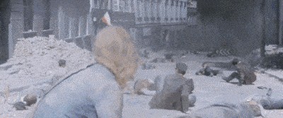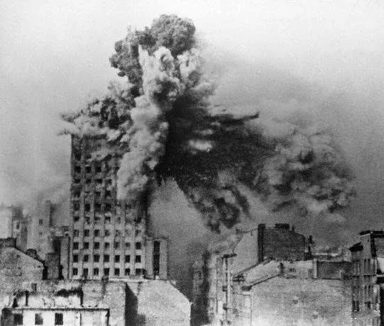 电影《浴血华沙》中,德军轰击华沙城内的场景