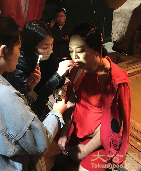 著名香港演员李健仁在《和尚进城》中继续出演“美女如花”。柳青 摄