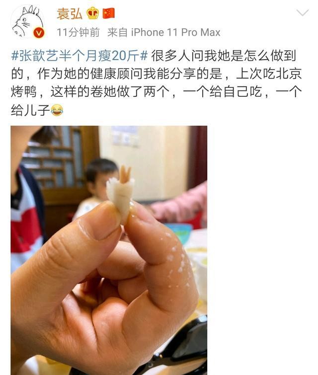 张歆艺生完孩子之后,一直致力于瘦身事业,坚持到现在,已经一年半多了,是个狠人。作为老公的袁弘倍感自豪,还p了个图,为老婆点赞,不过把老婆瘦下来的功劳归到自己身上就很过分了。