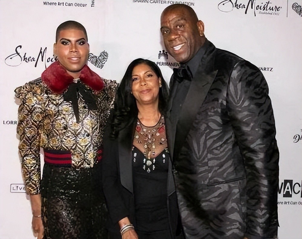 在NBA也出现了很多的星二代,像科比,库里,汤普森,乐福等人,很多球迷之前也是希望魔术师的儿子能够出现在NBA的赛场,但并没有实现。魔术师有两个儿子,但再提到他儿子之时,相信大家脑海中浮现出来的都是那个“出柜”的EJ酱-EJ约翰逊吧,他的身体素质其实很好,身高为2米,但他志不在篮球,并且早早的就宣布自己不喜欢男人,打扮的像贵妇,是大家闲余饭后的一员。