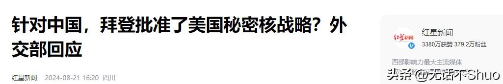信息来源于红星新闻2024年8月21日关于针对中国,拜登批准了美国秘密核战略?外交部回应