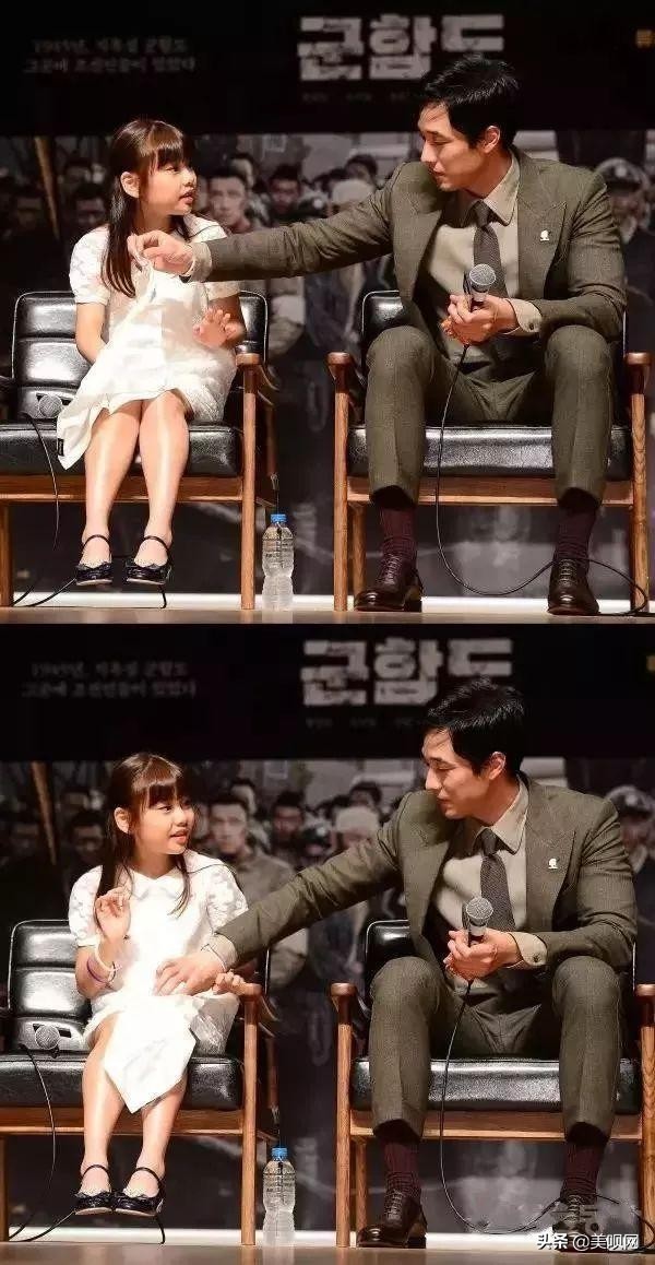 电影《军舰岛》发布会上,苏志燮注意到隔壁的小秀安因为短裙坐得各种不自在,默默揪出了西装里的手帕,给小秀安盖在腿上。