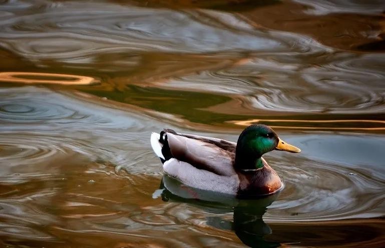 要说绿头鸭的长相特征,最典型的就是头上绿油油的羽色。但只有在繁殖期时的雄鸟头上才是墨绿色的,非繁殖期的绿头鸭雄鸟和雌鸟长得差不多。不过,就算分不出绿头鸭雄鸟和雌鸟,但也别将绿头鸭误认为鸳鸯哦~