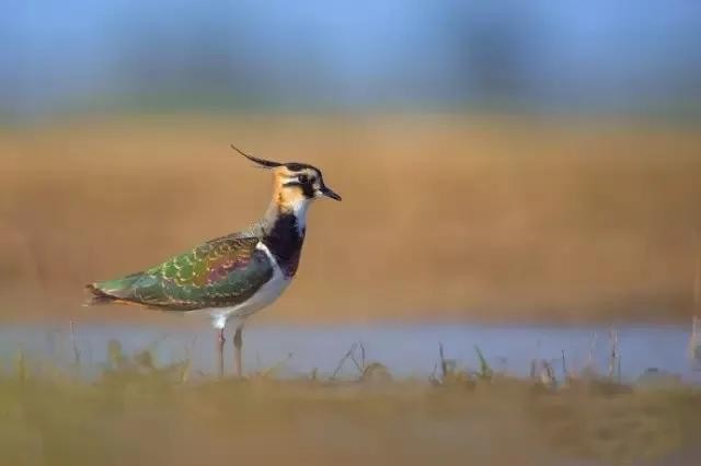 北京春天能看到的鸟儿,基本上是居留型鸟和少数迷鸟、冬候鸟,凤头麦鸡(Vanellus vanellus)是在北京最早过境的鸻鹬(héng yù)鸟类之一。三、四月份在北京过境的鸟类有很多,之所以介绍凤头麦鸡,是因为它的“发型”很独特,一眼就能认出。