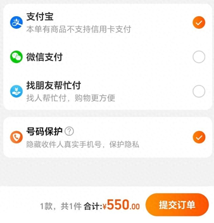 澎湃新闻记者实测发现,尽管默认支付模式仍为支付宝,淘宝特价版App目前已支持微信支付。在淘特App中将所需商品加入购物车后选择商品进行结账,界面下拉即可选择“支付宝”、“微信支付”与“找朋友帮忙付”三种模式。选择微信支付后,跳转至小程序即可结算。淘宝App则只支持“支付宝支付”与“找朋友帮忙付”两种结账方式。