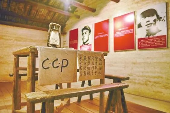 阁楼的桌上点着一盏煤油灯,房间里只有几条长板凳,靠北墙放着一张四方桌,桌面上压着两张下垂的长方形红纸。一张纸上写着中国共产党的英文缩写“CCP”,另外一张纸上写着毛泽东亲自撰写的入党誓词:“牺牲个人,努力革命,阶级斗争,服从组织,严守秘密,永不叛党。”