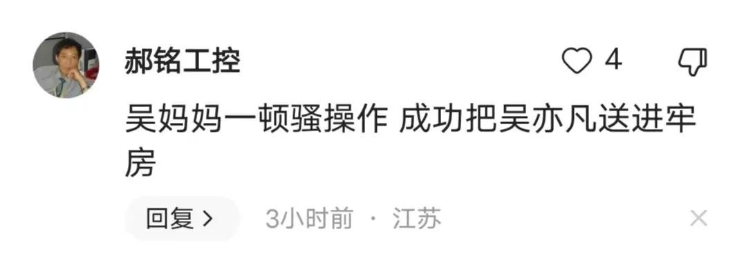 在这个充满争议的案件中,评论区的网友们也展开了激烈的讨论。有些人对吴亦凡表示愤慨,认为他应该受到法律的制裁;还有人对母亲的支持表示理解,认为家人之间应该相互守护。
