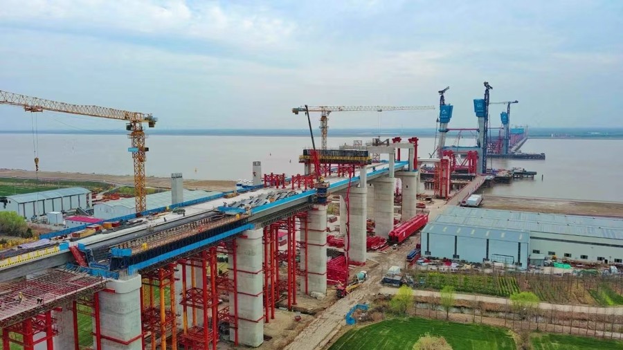 截至3月24日,崇启公铁长江大桥建设总体进度已完成三分之二。