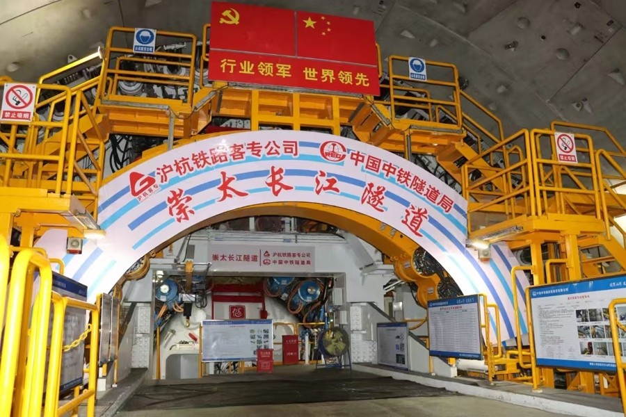 崇太长江隧道是上海至南京至合肥高铁控制性工程之一,隧道全长14.25千米,其中盾构段长13.2千米,采取单洞双线设计,独头掘进11.3255千米,是全球独头掘进距离最长的隧道;设计时速350公里,为世界行车速度最高的水下隧道;隧道深入长江水下89米,是长江最深的江底隧道。项目建成运营后,将实现高铁穿越长江不减速的壮举。