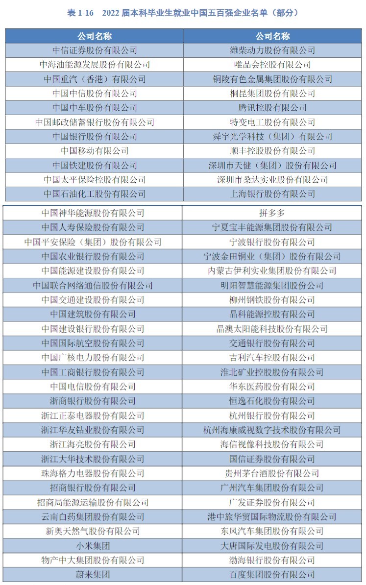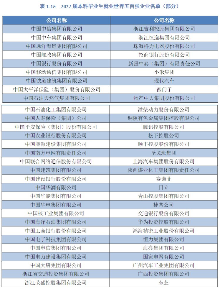 2022届本科毕业生共计194人进入世界五百强企业就职,309人进入中国五百强企业就职。