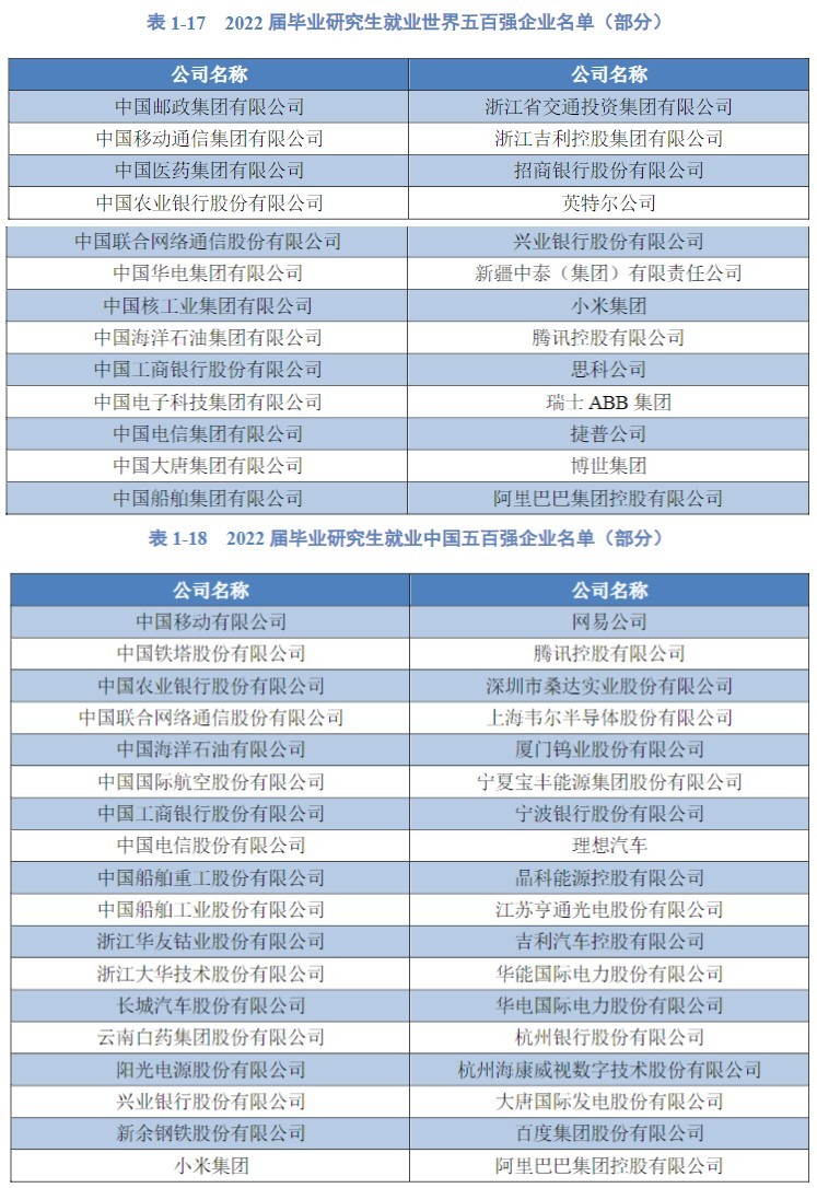 2022届毕业研究生共计58人进入世界五百强企业就职,135人进入中国五百强企业就职。